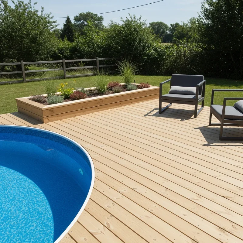 Good old pressure-treated pine remains the budget champion for pool decking, costing just $1,200 to $2,000 for a substantial platform. This tried-and-true material resists rot and insects while accepting stains beautifully. Southern yellow pine offers exceptional strength at rock-bottom prices compared to exotic hardwoods. The light color reflects heat, keeping the deck cooler on scorching summer days. You can find pressure-treated lumber at any home improvement store, often with free delivery for large orders. Simple construction techniques mean even beginners can achieve professional results. Regular staining every few years keeps it looking fresh and extends its lifespan significantly. Pine's affordability lets you build bigger without financial stress.