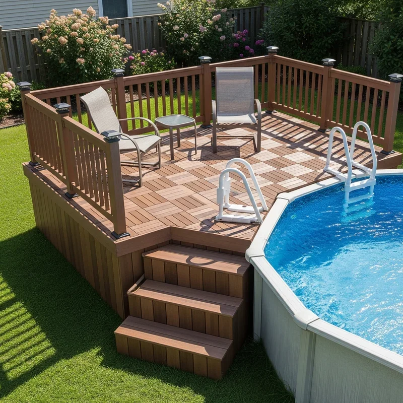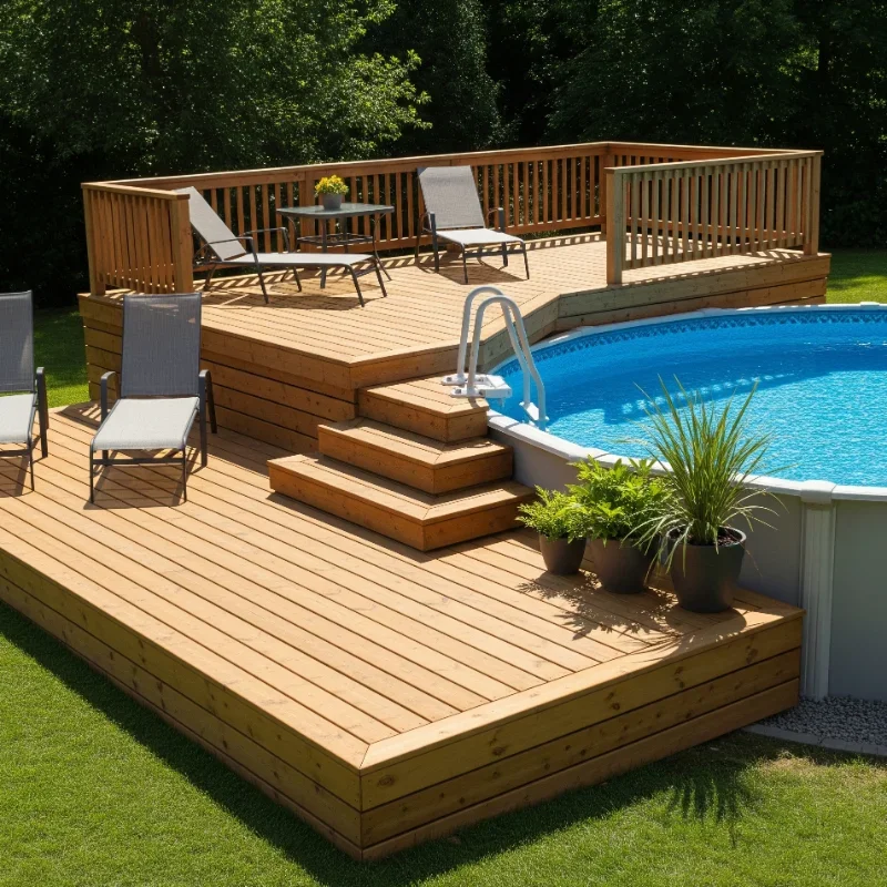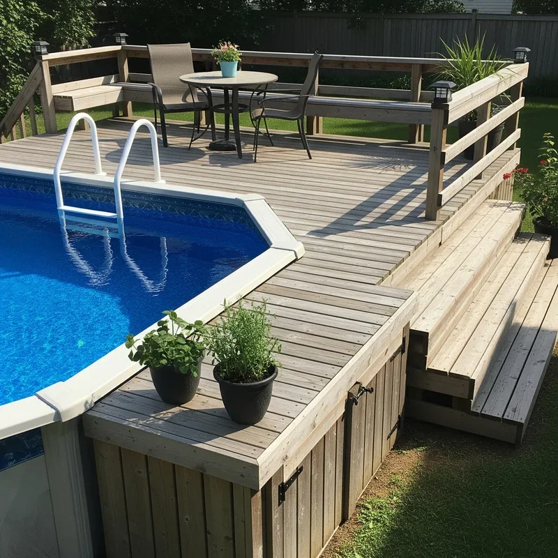 Building a basic platform deck with stairs offers the perfect entry point for budget-conscious pool owners. This straightforward design typically costs between $800 and $1,500, depending on your local lumber prices and pool size. You'll need pressure-treated lumber, concrete blocks for support, and basic tools most homeowners already own. The beauty lies in its simplicity; a single-level platform extends from one side of your pool, providing easy access via built-in stairs. Add some waterproof stain in your favorite shade, and you've got a professional-looking setup. What makes this option particularly appealing? You can complete the entire project over a single weekend with just one helper. The platform provides space for lounging, towel storage, and even a small table for refreshments.