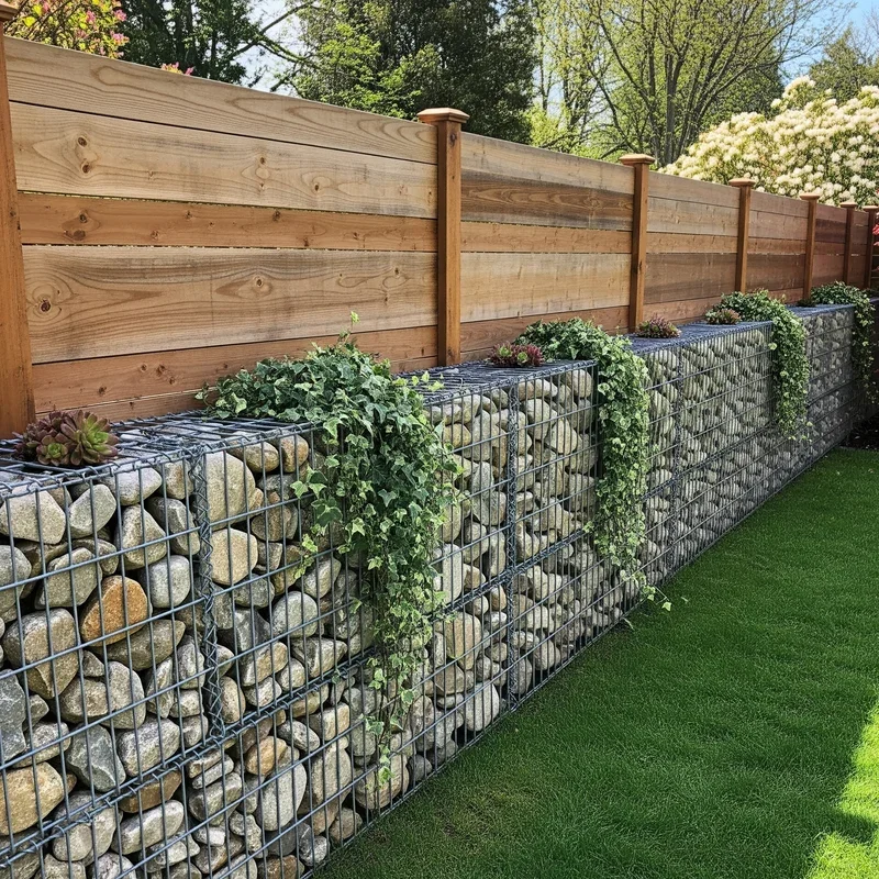 3. Gabion Wall Fencing: Industrial Meets Natural