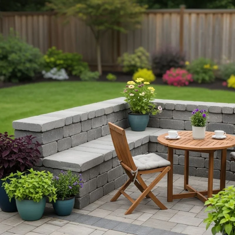 Maximize every inch by building benches directly into your patio's structure, creating seating that doesn't eat floor space. Build benches along retaining walls, deck edges, or fence lines, using the vertical surfaces as natural backrests. Add hinged tops for hidden storage compartments perfect for cushions, gardening supplies, or outdoor toys. The continuous lines of built-in seating make small spaces feel larger and more organized than scattered furniture. Use weather-resistant wood or composite materials, adding colorful cushions for comfort and personality. Include small tables that swing out from the wall or clip onto bench edges. Construction costs vary from $100-300 per linear foot depending on materials and complexity. These permanent features become architectural elements that define your patio while providing practical seating for gatherings.