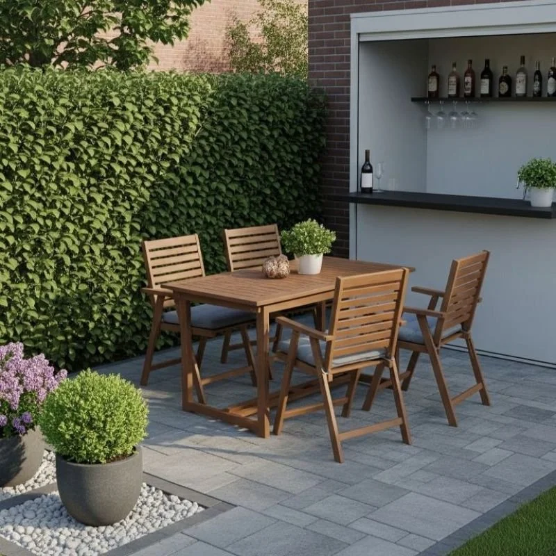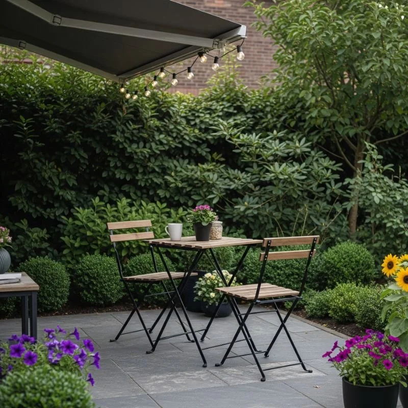 Think transformer furniture for your patio: pieces that expand when needed and disappear when they don't. Modern outdoor furniture includes everything from wall-mounted drop-leaf tables to chairs that fold completely flat. Invest in quality pieces that fold smoothly without pinching fingers or requiring wrestle matches. Store them on wall hooks, in slim spaces between structures, or in attractive storage boxes that double as side tables. This flexibility means hosting eight for dinner then reclaiming your space for morning yoga. Materials range from sustainable teak to powder-coated aluminum, with prices from $50-200 per piece. The key is choosing furniture that's genuinely easy to manipulate; if it's too cumbersome, you won't use the folding feature. Your small patio becomes a shape-shifter, adapting to whatever activity you have planned.