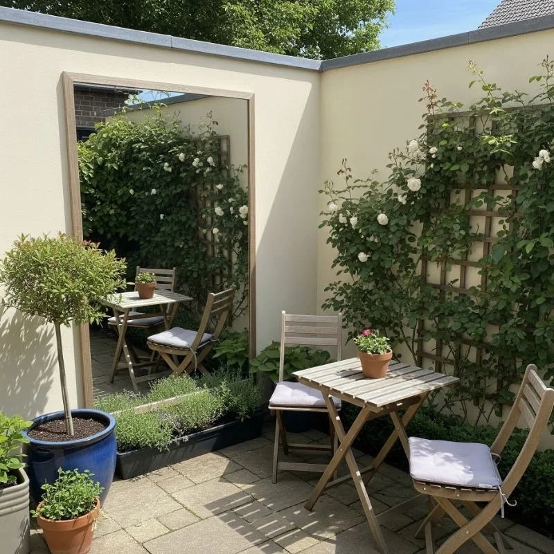 Here's a designer secret: mirrors double your space without adding a single square foot. Install weather-resistant outdoor mirrors on fences or walls to create depth illusions that make small patios feel expansive. Position mirrors to reflect your garden's best features, beautiful sky views, or architectural elements. Frame them like windows for a sophisticated look, or use multiple small mirrors in geometric patterns for artistic impact. Safety tip: use acrylic mirrors designed for outdoors to prevent weather damage and shattering. Strategic placement behind plants creates mysterious garden depths, while mirrors opposite seating areas open up the space dramatically. Expect to spend $50-200 per mirror depending on size and quality. The psychological impact is immediate: your brain perceives twice the space, making cramped patios feel surprisingly roomy.