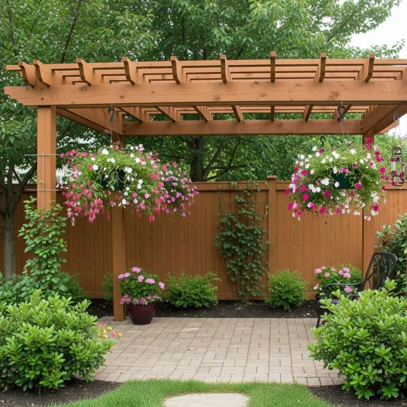 Create a room without walls by installing a pergola that defines space while maintaining openness. These overhead structures provide attachment points for hanging planters, string lights, and shade cloths without cramping ground space. Choose a pergola sized to cover just your main seating area, leaving pathways clear. Hang cascading plants from crossbeams to create a living ceiling that offers privacy and beauty. Modern pergola kits range from $500-2000 and install in a weekend. Add retractable shade panels for weather protection without permanent coverage. The vertical posts can support narrow shelving for additional plants or décor. Paint or stain your pergola to match house trim, creating visual connection between spaces. This architectural element makes small patios feel intentional and finished rather than leftover space.