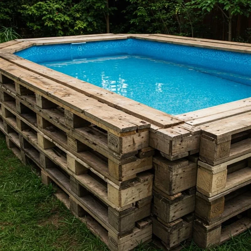 If rolling up your sleeves and getting crafty sounds appealing, then building a pallet pool might be right up your alley. Wooden pallets, often discarded by local businesses, can be repurposed into the frame for an above-ground pool. By securely arranging and fastening pallets into a circular or rectangular shape, you create the basic structure. Then, line the inside with a heavy-duty tarp or pool liner to hold the water. The final look can be surprisingly polished—just sand and stain the outside of the pallets for a rustic feel that’s both functional and stylish. And here’s a bonus: it doubles as a conversation piece. Visitors will be astounded at your resourcefulness, and you’ll feel like a true DIY hero. Talk about turning trash into treasure while you make waves in the backyard!