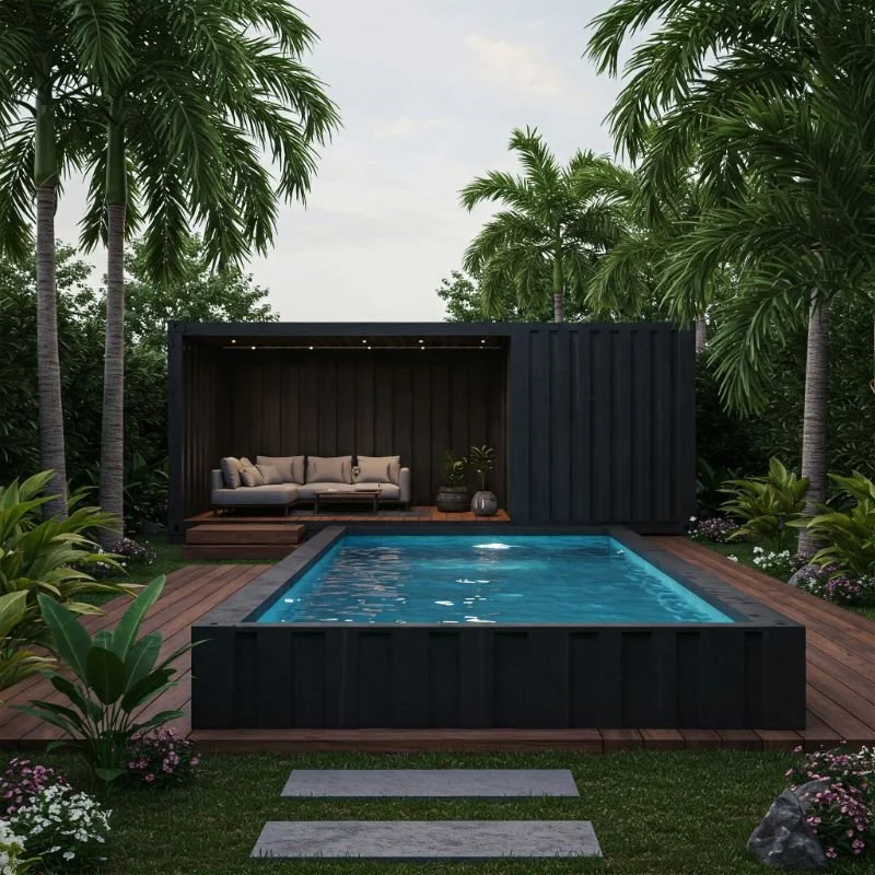 For those who prefer a sleek, modern aesthetic, shipping container pools are an absolute showstopper. Imagine a giant steel box repurposed into a swanky swimming spot—complete with steps, windows, and custom finishes. While this option might be pricier than an inflatable or a stock tank, it’s still generally more cost-effective than building a traditional in-ground pool. Plus, the shipping container’s sturdy structure means it’s designed to stand the test of time. If you’re going for that industrial-chic look, the container’s edgy design might be all you need. But if you’re feeling inspired, add decorative touches like reclaimed wood paneling or tinted glass walls. The best part? Shipping container pools can be installed above-ground or partially in-ground, giving you plenty of flexibility to fit your backyard’s layout and your personal style.