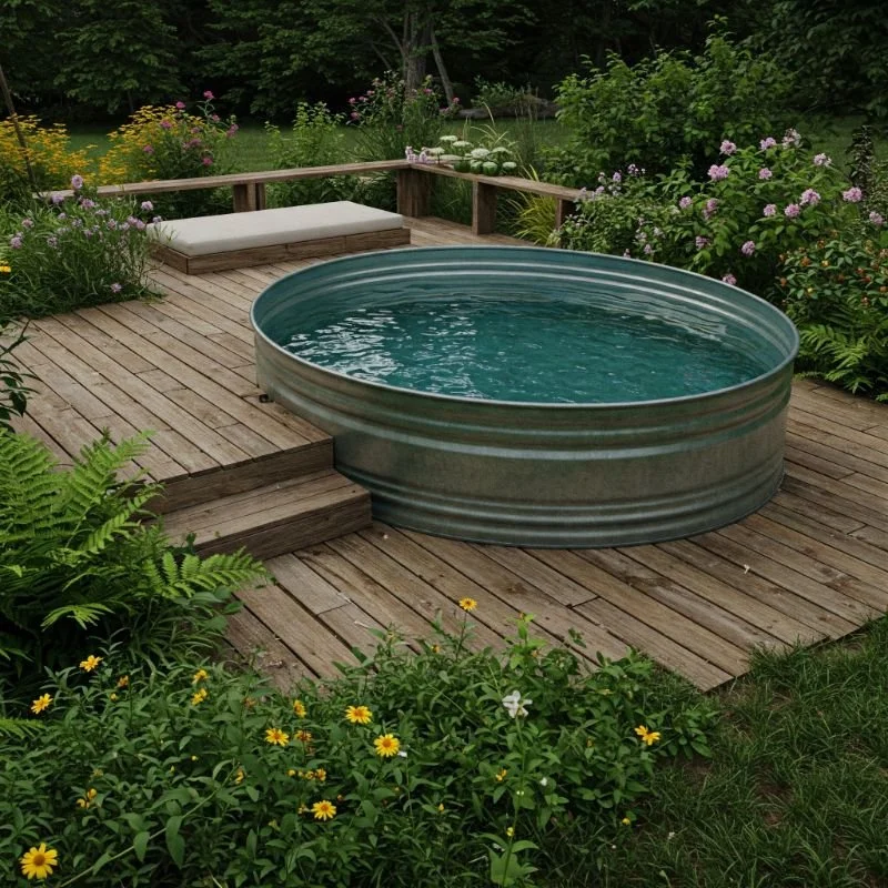 Craving that rustic vibe you’ve seen plastered across social media? Stock tank pools are the perfect blend of farmhouse charm and convenience. Originally meant to hold livestock water, these large metal or plastic containers have found new life in suburban backyards. They’re relatively easy to set up—just level the ground, position the tank, add water, and you’re good to go. With a few clever décor touches, your stock tank pool can become the focal point of a cozy, farmhouse-themed retreat. Try wrapping the exterior with wooden panels or adding a stepping-stone path around it for instant style. And because they’re compact, stock tank pools heat up quickly under the sun, helping you enjoy a pleasantly warm dip. It’s a distinctive, wallet-friendly alternative that brings countryside charm straight to your doorstep.