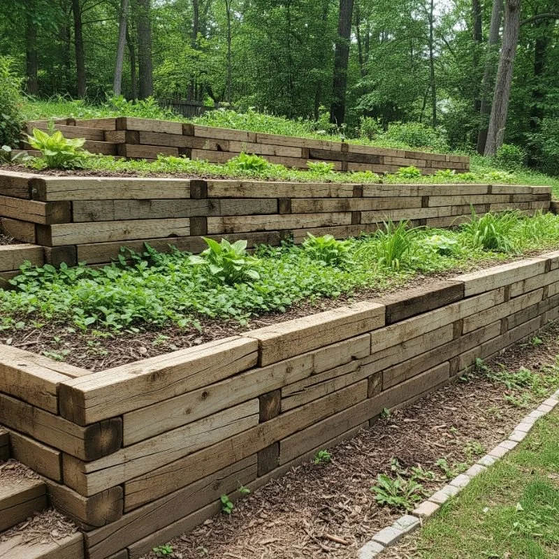 Repurpose sturdy railroad ties into retaining walls with industrial character and proven durability. The substantial dimensions create bold horizontal lines in landscape compositions. Pre-drilled spike holes simplify connecting ties during installation. Their weight provides stability while uniform sizing speeds construction. Stack ties like Lincoln Logs offsetting joints for strength. The weathered appearance adds instant age to new landscapes. Newer composite ties offer similar aesthetics without chemical treatments. Budget-friendly prices make them attractive for large projects. The rustic charm complements cabin settings and woodland gardens. Consider environmental concerns with older creosote-treated ties near edibles. Perfect for creating raised beds or defining property boundaries stylishly.