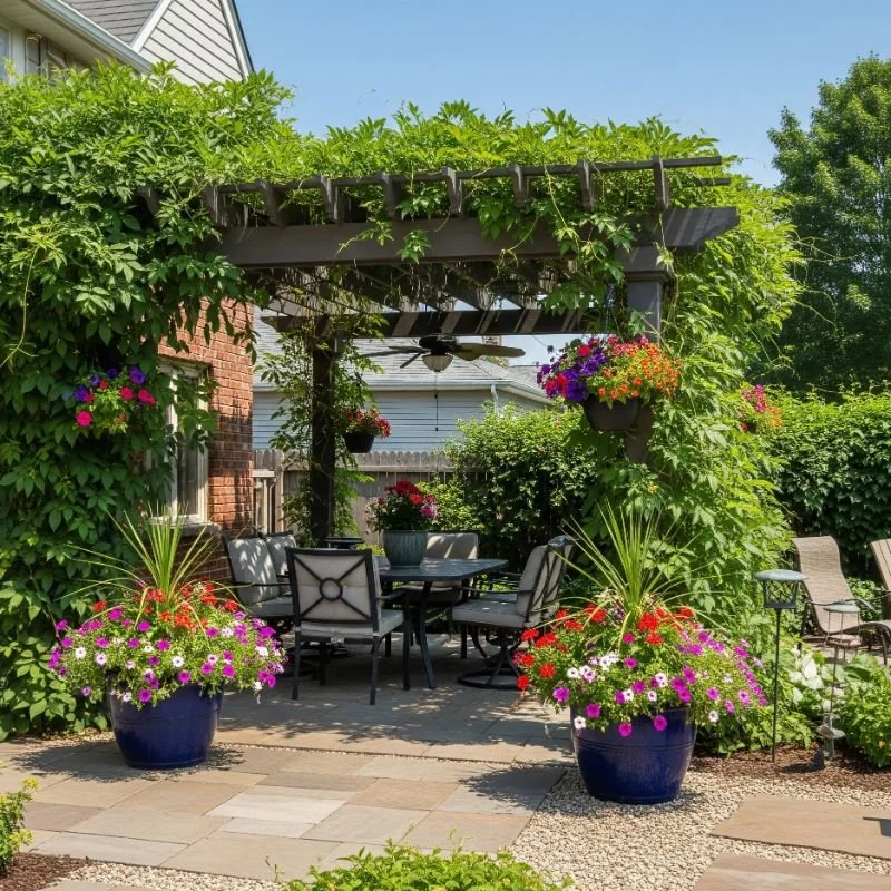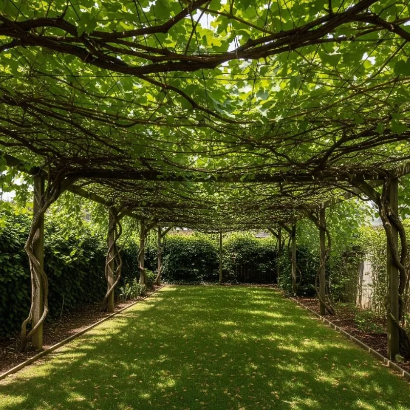 Harness nature's own shade makers by training fast-growing vines over simple structures for living canopies! Seeds or starter plants cost mere dollars while providing season-long coverage. Create supports using rope grids, cattle panels, or basic wooden frames. Morning glories, pole beans, and grape vines sprint skyward, developing dense coverage within weeks. The living shade cools through transpiration, actually lowering temperatures beyond simple sun blocking. Edible options like grapes or beans provide bonus harvests. Annual vines allow different varieties each year, while perennials establish permanent shade. The initial patience pays off with self-renewing shade that improves yearly. Maintenance involves occasional training and watering, far less than mowing grass. This solution particularly suits gardeners who appreciate productive landscaping and organic aesthetics.