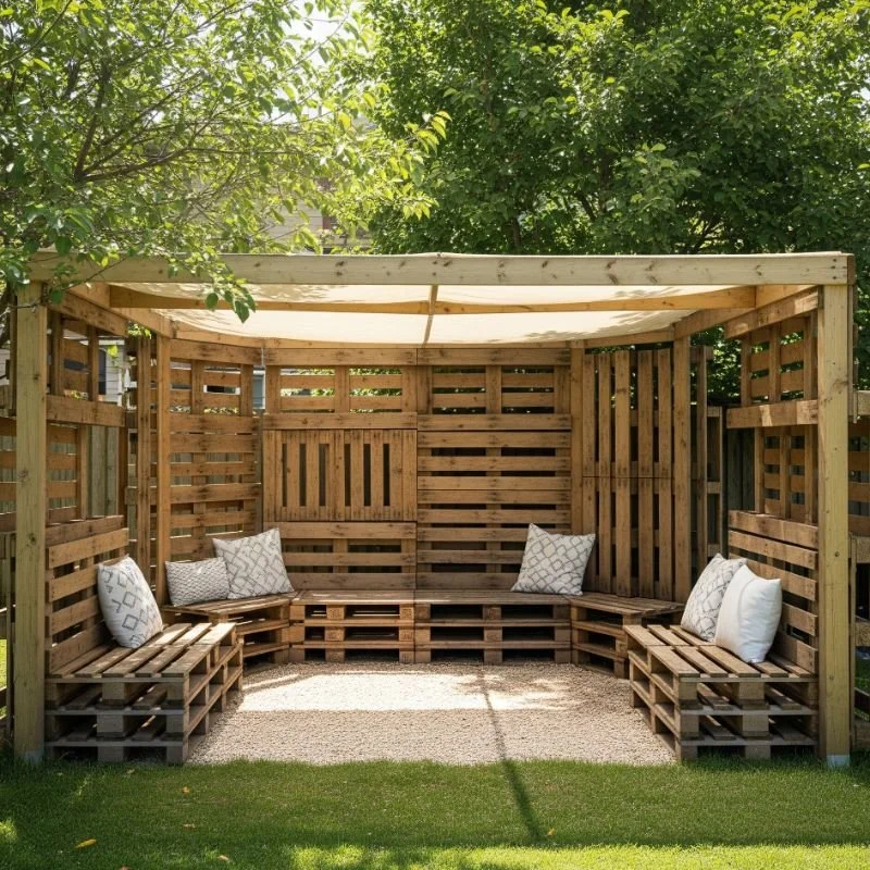 Turn free shipping pallets into shade structures that would make Pinterest jealous while keeping budgets happy! Source pallets from local businesses eager to avoid disposal fees. Stand vertically for instant privacy screens or lay horizontally across simple frames for overhead coverage. The slat design provides filtered shade while maintaining airflow. Paint or stain for polished looks or leave natural for rustic charm. Combine multiple pallets for larger structures or use singles for targeted shade spots. The modular nature allows easy reconfiguration as needs change. Add fabric or plants for denser coverage. Basic tools and screws complete projects in afternoon sessions. This upcycling approach appeals to DIY enthusiasts and environmental consciousness. The industrial aesthetic suits modern landscapes while the wood warmth fits traditional gardens perfectly.