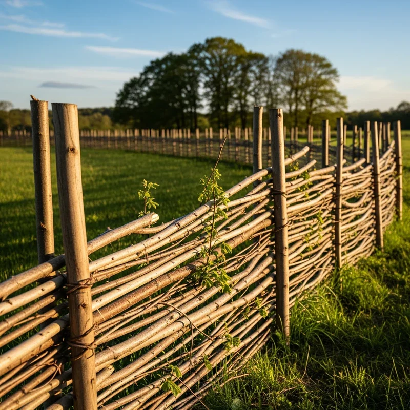 Channel your inner pioneer with a woven branch fence that looks like it stepped out of a fairy tale. This ancient technique, also called wattle fencing, uses flexible branches woven between vertical posts to create a sturdy, natural barrier. If you have access to willow, hazel, or other pliable branches, your main investment is time rather than money. Start with sturdy posts spaced about three feet apart, then weave branches horizontally in an over-under pattern. The result is a rustic fence that provides surprising privacy while maintaining an organic, handcrafted aesthetic. As branches age and settle, the fence develops even more character. It's biodegradable, renewable, and costs virtually nothing if you source materials locally. Your neighbors might think you hired an expensive landscape designer, but you'll know the truth: sometimes the best things in life really are free!