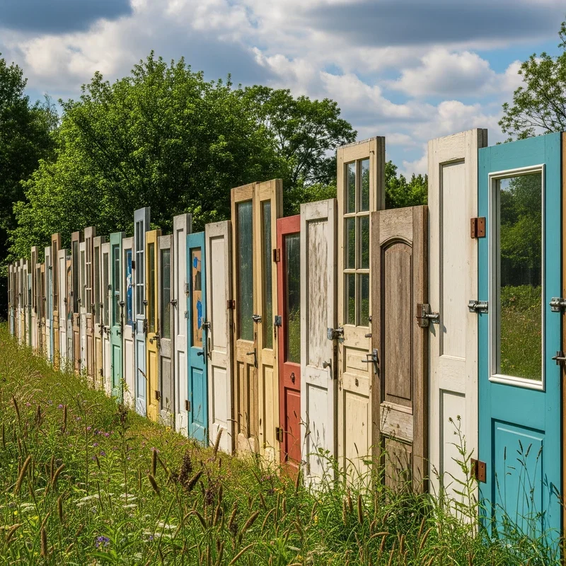 One person's trash is another's privacy treasure! Old doors destined for the dump can become the quirkiest, most conversation-starting fence in your neighborhood. Scour salvage yards, renovation sites, or online marketplaces for solid doors in various styles and sizes. The mismatched look isn't a bug; it's a feature that adds character and tells a story. Strip them down to natural wood for a cohesive look, or embrace the chaos with different colors and hardware intact. Secure them side by side with sturdy posts, and you've created a fence that's part privacy screen, part art installation. Each door brings its own history and personality to your yard, creating a backdrop that's impossible to replicate. Plus, you're keeping perfectly good materials out of landfills while saving serious cash. Eco-friendly and budget-friendly? Now that's a win-win situation!