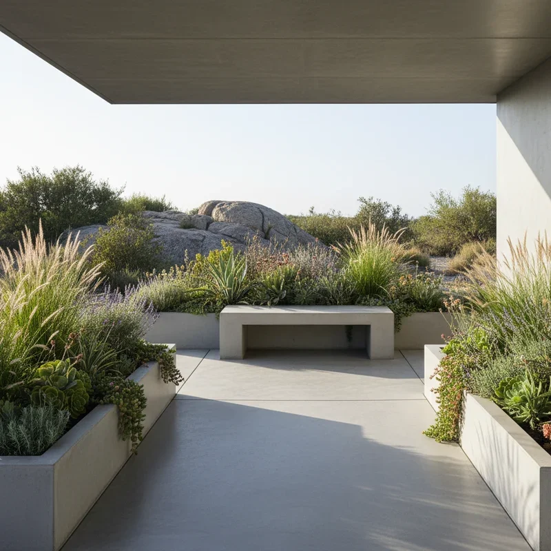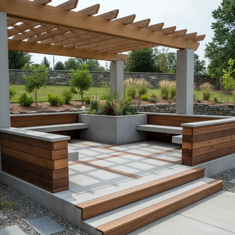 Integrating planters directly into your concrete porch design creates permanent landscaping features that soften hard surfaces with natural beauty. These built-in elements can form walls, define seating areas, or frame entrances while providing homes for colorful flowers or architectural plants. Construction involves forming planter boxes during the initial pour or retrofitting existing porches with formed additions. Drainage systems prevent water damage while allowing plants to thrive in their concrete containers. The permanence eliminates the clutter of portable pots while ensuring consistent placement and appearance. Choose cascading plants for vertical interest or structured topiary for formal appeal. Built-in irrigation systems can simplify maintenance for busy homeowners. The combination of organic and architectural elements creates balanced compositions that feel both welcoming and sophisticated.