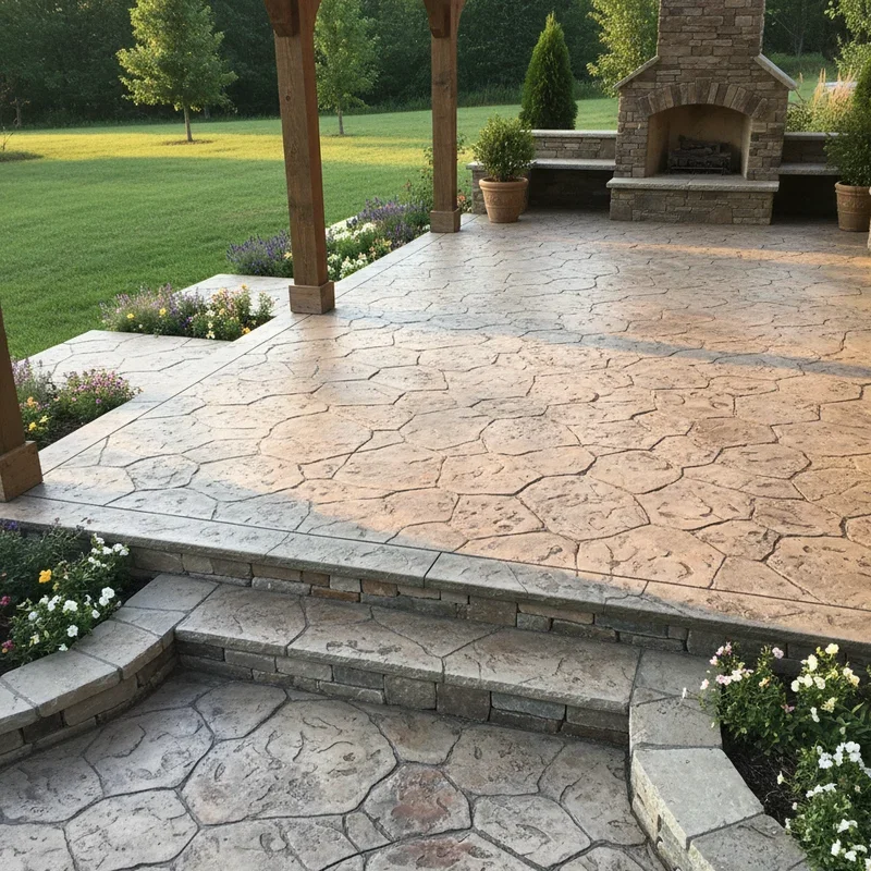 1. Stamped Concrete Patterns Mimicking Natural Stone