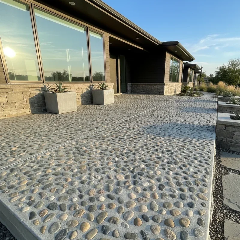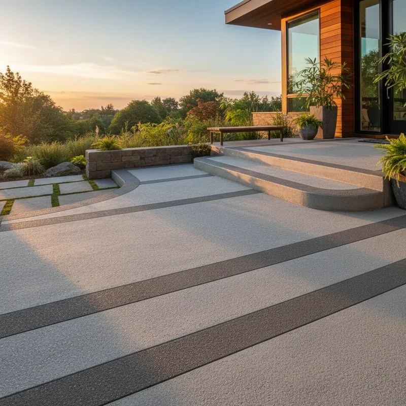 A4: Exposed aggregate and textured finishes provide superior traction for icy conditions year-round.