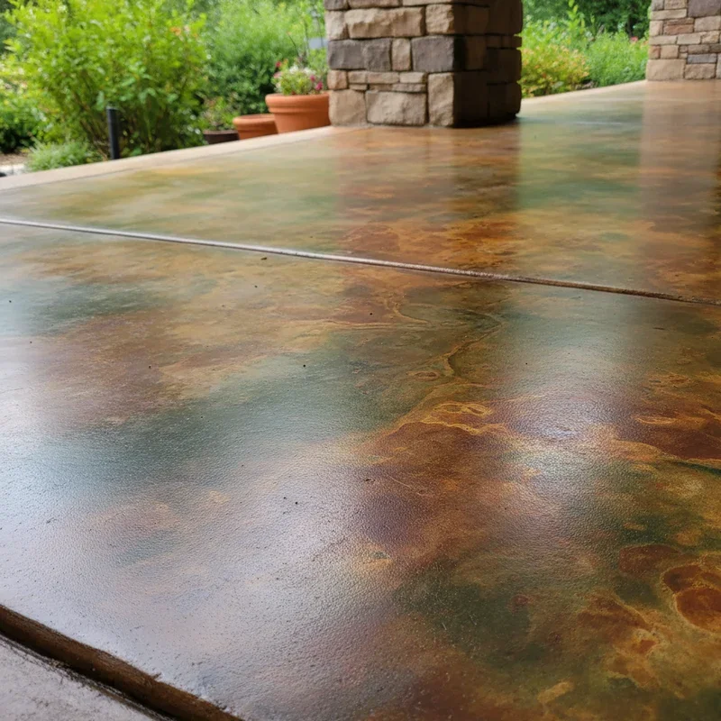 Overlay systems offer a second chance for worn, cracked, or outdated concrete porches without demolition costs or hassles. These polymer-modified toppings bond permanently to existing concrete, creating a fresh canvas typically quarter-inch to half-inch thick. The application process involves cleaning, repairing cracks, applying primer, then troweling or spraying the overlay material. Once applied, you can stamp, stain, or texture the new surface using any decorative technique imaginable. Overlays actually strengthen your porch while hiding years of wear and damage beneath their protective layer. Color options span the entire spectrum since pigments mix directly into the overlay material. The transformation happens quickly, often completed within days rather than weeks required for full replacement.