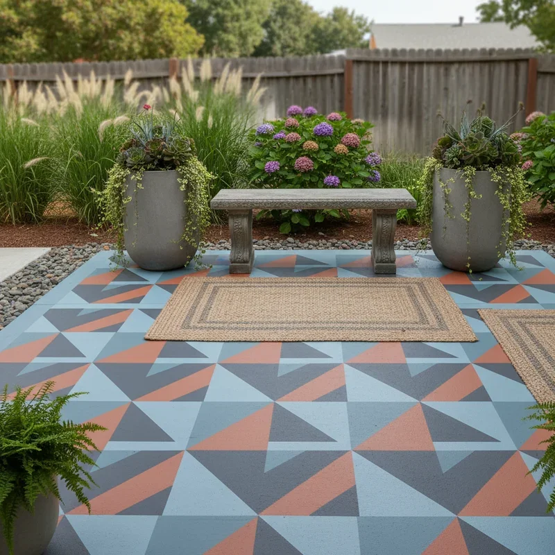 Painting your concrete porch opens unlimited creative possibilities, transforming that bland surface into a bold statement piece using specialized concrete paints and stencils. Geometric patterns like hexagons, chevrons, or Moroccan tiles create visual impact that rivals expensive tile installations. The key lies in proper surface preparation and using high-quality concrete paint designed to withstand foot traffic and weather extremes. You can channel your inner artist with freehand designs or use stencils for precision patterns. Color psychology plays here too: cool blues create calm entrances while warm terracotta tones evoke Mediterranean holidays. Two-tone designs add depth, making small porches appear larger through clever optical illusions. Touch-ups remain easy, allowing design evolution as your style preferences change over time.