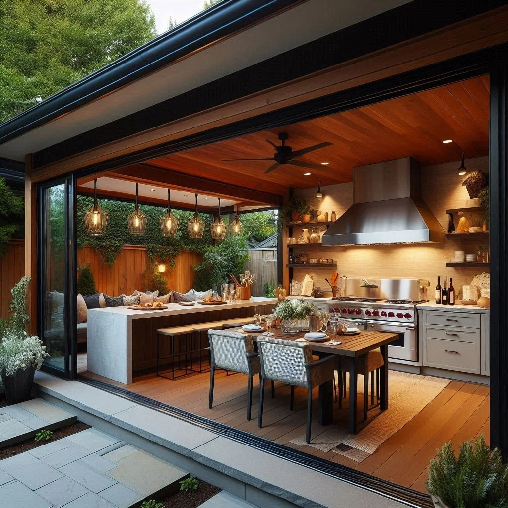 11. Hybrid Indoor-Outdoor Kitchen with Sliding Glass Doors