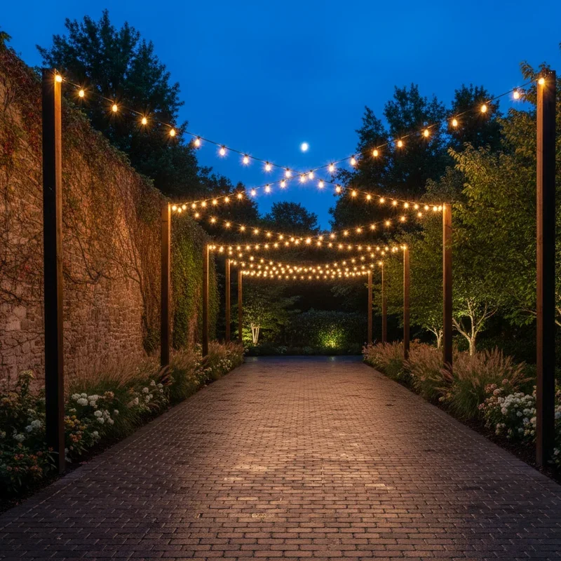 Who says string lights belong only at parties? Permanent outdoor string lighting transforms your driveway into an enchanting pathway year-round. Commercial-grade LED strings withstand weather extremes while providing that magical café-style ambiance everyone loves. Hang them between posts, trees, or specially installed poles along your driveway's length. Choose from classic warm white bulbs, Edison-style vintage bulbs, or even color-changing smart bulbs controlled via smartphone. The key lies in proper installation with adequate support and weather-resistant connections. Many homeowners discover that string lights make everyday arrivals feel special while creating an inviting atmosphere for outdoor gatherings. Dimmable options let you adjust brightness for different occasions and moods.