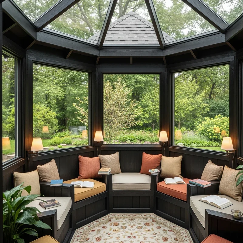 Create the perfect literary escape with cozy gazebos designed specifically for reading and quiet contemplation! Built-in bookcases keep your library close at hand while adding architectural interest. Comfortable seating with good back support encourages extended reading sessions. Multiple light sources, including natural light, task lighting, and ambient options, protect your eyes during different times of day. Small side tables hold beverages and reading glasses within easy reach. Window seats with cushions and throw pillows create inviting reading spots. The enclosed space blocks wind that would otherwise flip pages and disturb concentration. Sound insulation creates the quiet environment serious readers crave. Climate control ensures comfort regardless of weather, extending your reading season. The dedicated space elevates reading from casual activity to cherished ritual.
