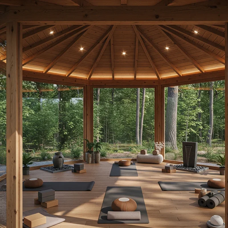Create a serene sanctuary for mindfulness practices with gazebos designed for meditation and yoga! Minimalist interiors free from distractions allow complete focus on your practice. Natural materials like bamboo flooring and wood walls enhance the connection to nature. Large windows or skylights provide natural light that changes throughout the day, creating dynamic practice environments. Sound insulation ensures outside noises don't disturb your concentration. Built-in storage for yoga props, cushions, and meditation accessories keeps the space uncluttered. Consider installing speakers for guided meditations or calming music. The dedicated space reinforces the importance of your practice, making it easier to maintain regular sessions. Heating and cooling systems ensure comfortable practice temperatures year-round. The enclosed nature provides privacy for movement practices while maintaining visual connection to natural surroundings.