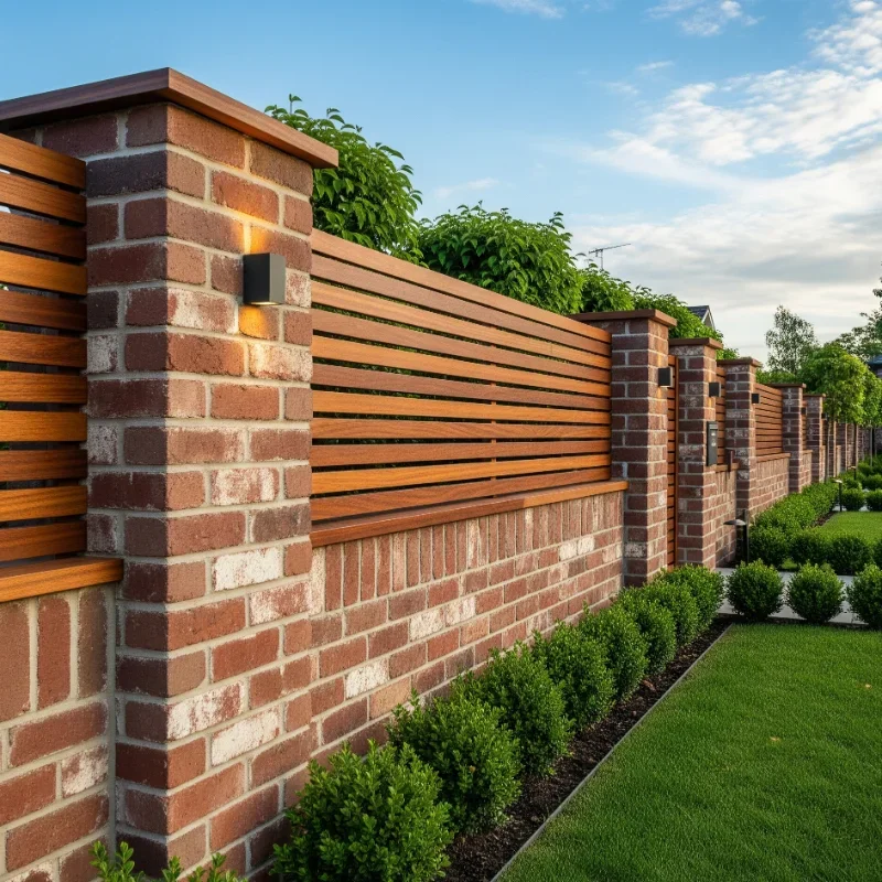 Combining brick pillars with wooden panels creates a fence that balances permanence with warmth, offering the best of both materials in one cohesive design. The brick elements add substance and gravitas, anchoring your fence with solid columns that frame wooden sections like artwork in a gallery. This combination allows for creative play with heights and spacing, perhaps using shorter wooden sections near the entrance and taller ones for privacy. The contrast between the smooth wood and textured brick creates visual interest that keeps the eye moving along your property line. Brick pillars provide perfect mounting points for lighting, mailboxes, or address plaques, turning functional elements into design features. The durability of brick paired with the replaceability of wood sections means your fence can evolve with changing tastes while maintaining its structural integrity.