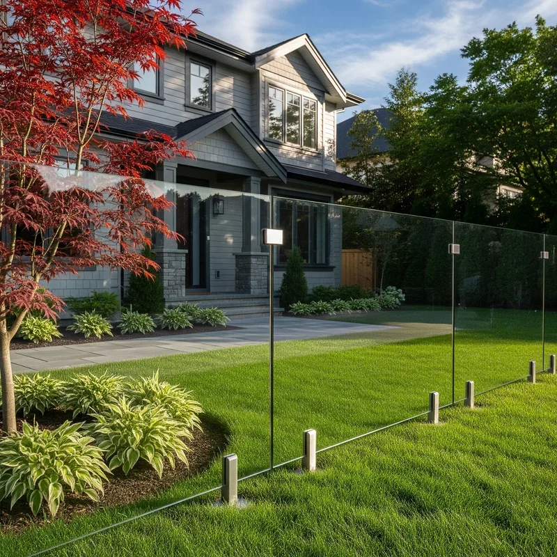 Glass panel fencing represents the ultimate in modern luxury, creating boundaries that protect without hiding your beautiful landscaping or architectural features. These panels use tempered safety glass held in minimal frames, offering unobstructed views while providing wind protection and defining your property lines. The transparency maintains neighborhood connectivity while clearly establishing private space, perfect for front yards where you want openness without sacrificing security. Frosted or tinted options provide varying privacy levels, and you can mix clear and obscured panels to create custom privacy zones. The maintenance is surprisingly simple, requiring just occasional cleaning to maintain that crystal-clear appearance that makes your property look larger and more inviting. Combined with strategic lighting, glass fences become stunning light features at night, creating an ethereal glow that transforms your front yard into an evening showcase.