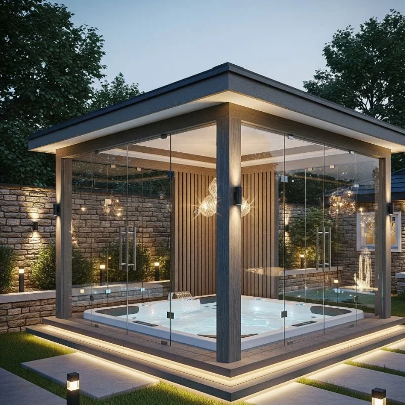 2. Modern Glass Enclosed Hot Tub Gazebo
