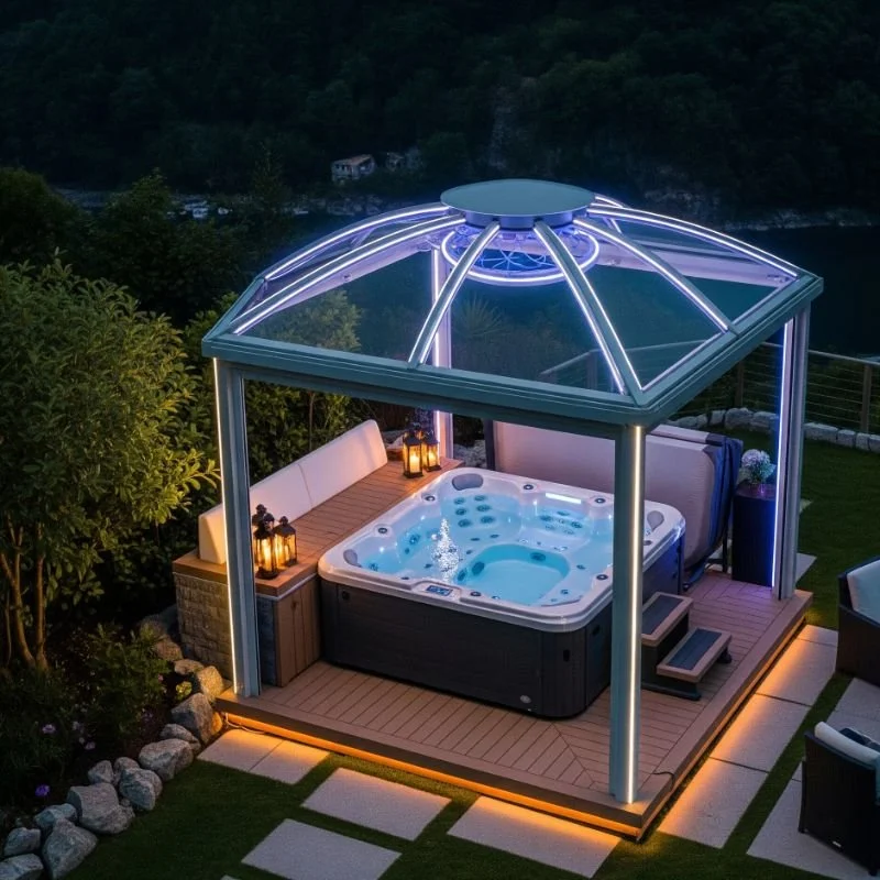 15. Futuristic Smart Gazebo Hot Tub Setup
