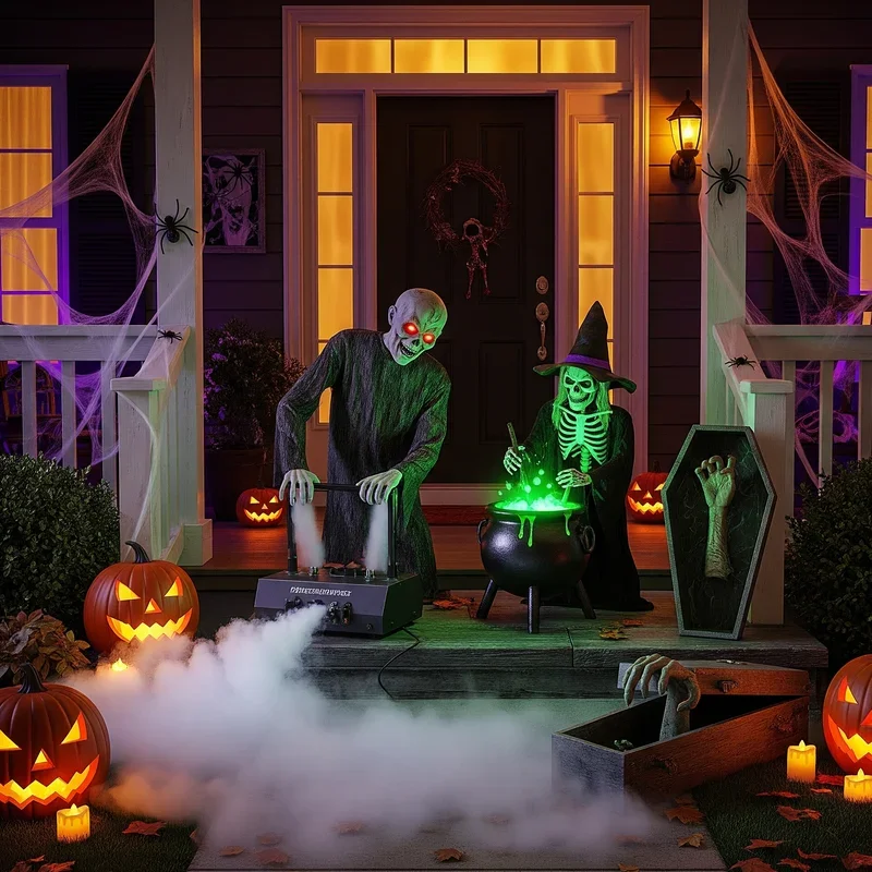 Invest in animatronic decorations that bring Hollywood-quality scares to your humble porch setting. Position motion-activated figures where they'll surprise visitors but won't cause actual accidents. Use jumping spiders, lunging werewolves, or rising vampires for maximum scare factor. Coordinate multiple animatronics with smart plugs for synchronized horror performances every half hour. Hide mechanisms behind static decorations so animations seem to emerge from nowhere. Create scenes where animatronics interact with static props for storytelling effects. Program different activation patterns to prevent visitors from predicting scare timing. Include reset delays preventing constant triggering that would diminish the surprise element. Combine animatronics with fog machines and lighting for theatrical production values.
