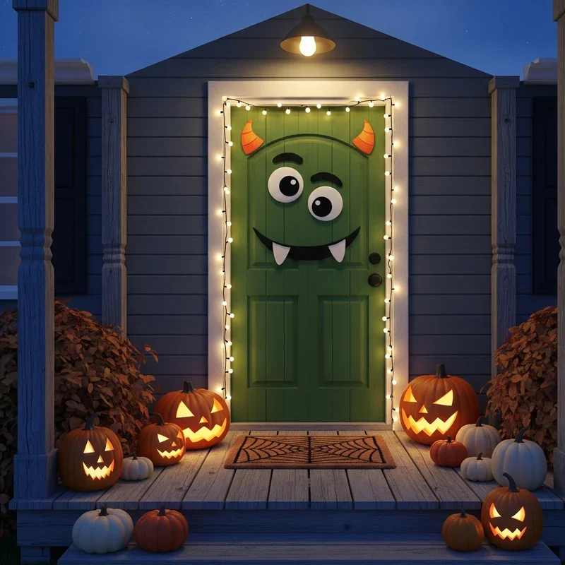 Transform your front door into a giant monster face that swallows visitors as they enter your home. Create eyes using paper plates or foam circles positioned above the door frame strategically. Fashion teeth from white poster board, attaching them around the door frame like a gaping mouth. Add a foam or fabric tongue that extends onto your porch for dimensional effects. Use the door knocker or doorbell as a nose, incorporating it cleverly into your design. Paint or attach eyebrows, wrinkles, and other facial features for character development. Install color-changing LED strips around the door for mood lighting that shifts ominously. Create different monsters throughout October, surprising repeat visitors with new creatures. Include sound effects triggered by doorbell that roar or growl when pressed.