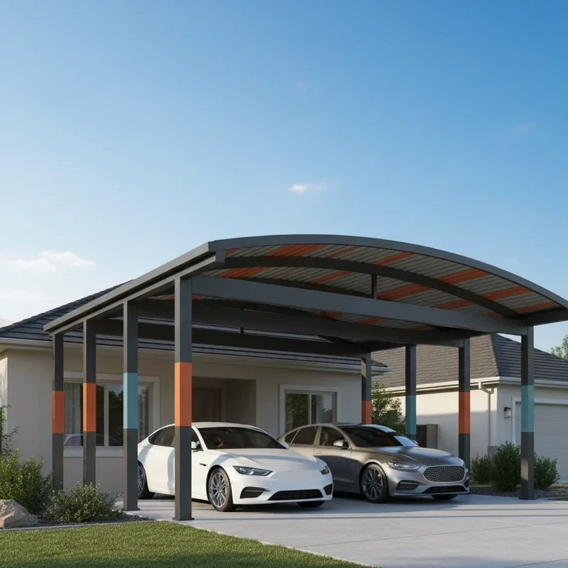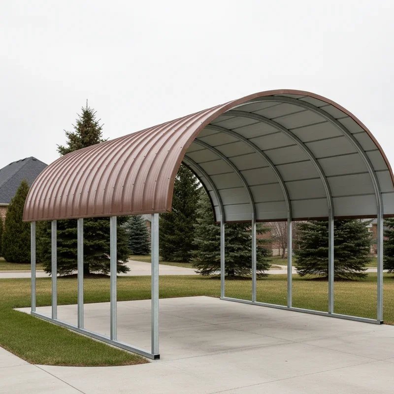 Arched roof carports feature gracefully curved profiles that create distinctive aesthetics while delivering excellent structural performance and weather shedding. The rounded shape naturally resists wind uplift forces better than flat configurations while distributing loads evenly across the framework. Snow and debris slide off curved surfaces more readily, reducing maintenance and preventing damaging accumulations. These elegant structures soften architectural lines, adding organic curves to properties dominated by rectangular forms. The arch design works beautifully with various home styles from contemporary to traditional, adding sculptural interest. Metal panels conform to curved frameworks during manufacturing, creating smooth, continuous surfaces without seams or flat spots. Interior clearance remains generous despite the curved profile, accommodating tall vehicles comfortably. The distinctive appearance creates memorable visual impact that distinguishes your property. Quality engineering ensures structural integrity while maintaining the flowing aesthetic.