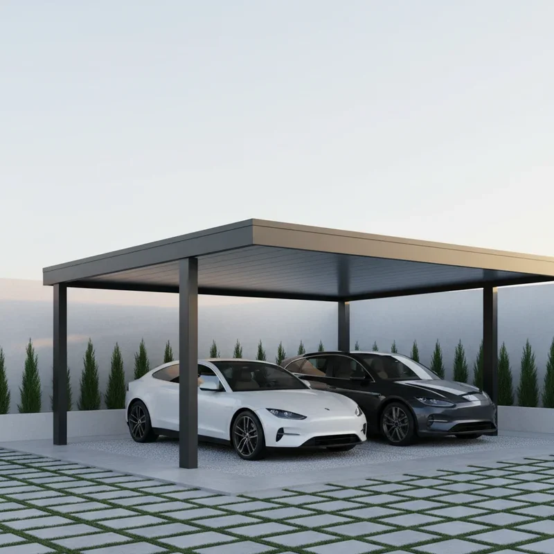 Flat roof metal carports embody contemporary design with their clean horizontal lines and uncluttered profiles that complement modern architectural styles perfectly. These streamlined structures eliminate visual complexity, creating sophisticated covered spaces that don't compete with your home's design. The horizontal roof plane extends smoothly from sturdy metal posts, offering straightforward weather protection without unnecessary ornamentation. Flat designs work exceptionally well for contemporary, mid-century modern, and minimalist homes where simplicity reigns supreme. Despite their simple appearance, these carports require proper engineering to handle water drainage effectively through integrated gutter systems or subtle slopes. Metal construction ensures the flat profile remains structurally sound under snow loads and wind pressure. The open sides maintain airflow while the solid roof blocks UV rays and precipitation. Powder-coated finishes in black, gray, or white create monochromatic elegance that photographs beautifully and ages gracefully.