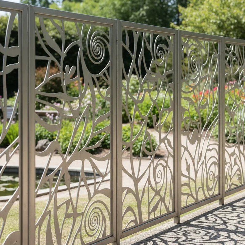 Laser-cut metal panels showcase intricate designs impossible to achieve through traditional fabrication methods, creating truly unique fence artworks. Modern technology cuts precise patterns ranging from nature-inspired motifs to abstract geometric designs to custom family crests. These panels transform functional boundaries into outdoor galleries displaying your personal style and artistic sensibilities. You'll find endless possibilities for customization, from subtle patterns to bold statements that become neighborhood landmarks. The cutting precision creates clean edges and intricate details that cast beautiful shadows throughout the day. These fences work wonderfully as feature sections within simpler fence runs, creating focal points without overwhelming entire properties. Consider illuminating laser-cut panels at night for dramatic shadow effects that transform your outdoor spaces into enchanted evening environments!