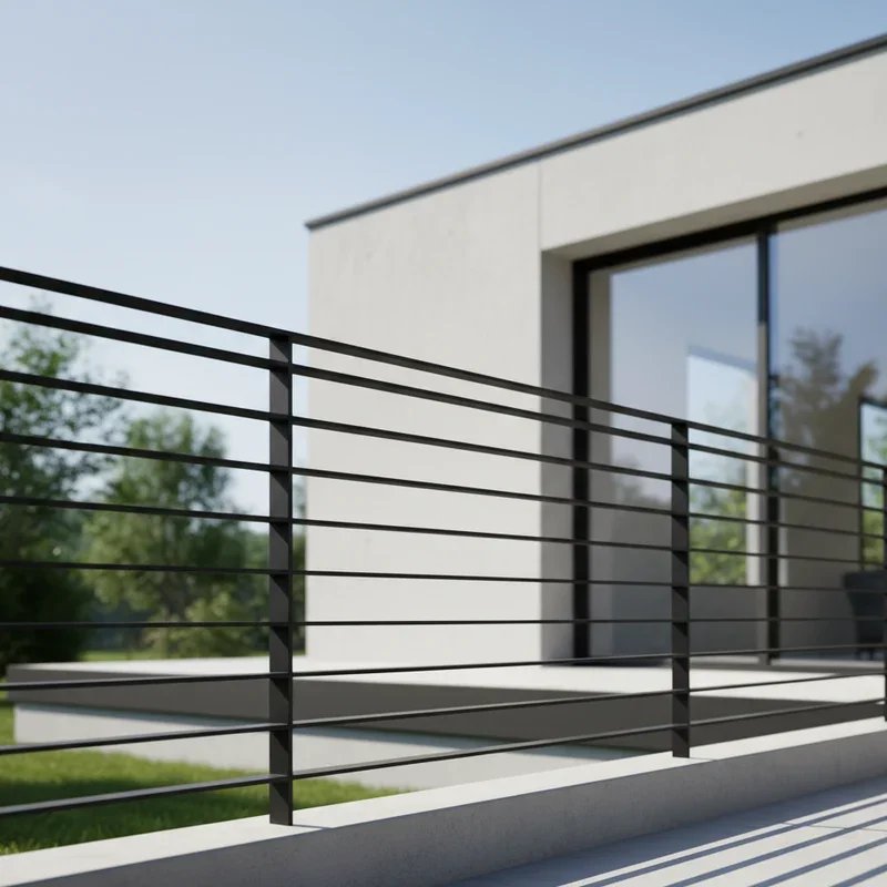 Simple black metal railings create understated boundaries that virtually disappear, allowing landscapes and architecture to shine without visual competition. These streamlined designs typically feature horizontal or vertical bars in powder-coated black finishes that recede into backgrounds. The minimalist approach works beautifully for modern, contemporary, or even traditional properties wanting unobtrusive security without architectural distraction. You'll appreciate how black fencing creates strong outlines without overwhelming spaces with excessive visual weight or pattern. The clean lines complement virtually any landscape style from zen gardens to colorful cottage plantings. Installation is straightforward, and maintenance involves occasional cleaning to remove dirt or pollen accumulation. Consider slightly wider spacing between rails if you're aiming for maximum visual transparency while maintaining boundary definition and pet containment!