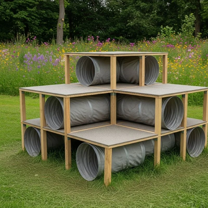 Why limit cats to ground level when they naturally love climbing? Multi-level tunnel networks create three-dimensional playgrounds that satisfy climbing instincts while maximizing limited space. These systems incorporate ramps, platforms, and varying heights to create engaging pathways. Connect upper-story windows to ground-level enclosures or build elaborate jungle gyms with tunnels at different elevations. Use sturdy materials like treated lumber and galvanized mesh to support active cats. Include rest platforms every few feet for older or less athletic cats. Costs vary from $200 for simple two-level systems to $1000+ for complex networks. The vertical element adds exercise opportunities and entertainment value. Cats love surveying their territory from different vantage points. Design considerations include weather protection for elevated sections and easy human access for maintenance. This investment creates an amusement park that keeps cats engaged for hours.