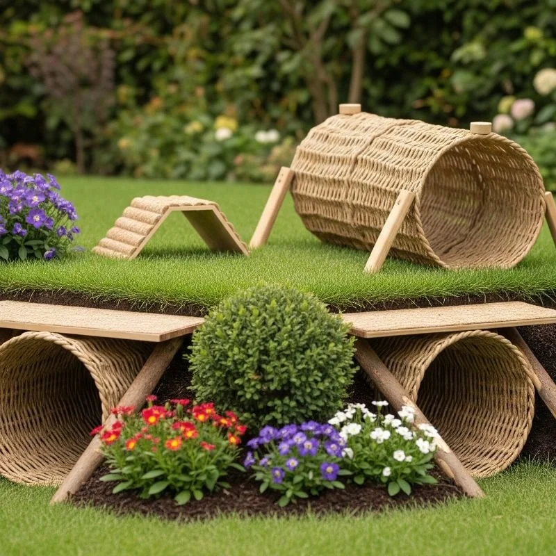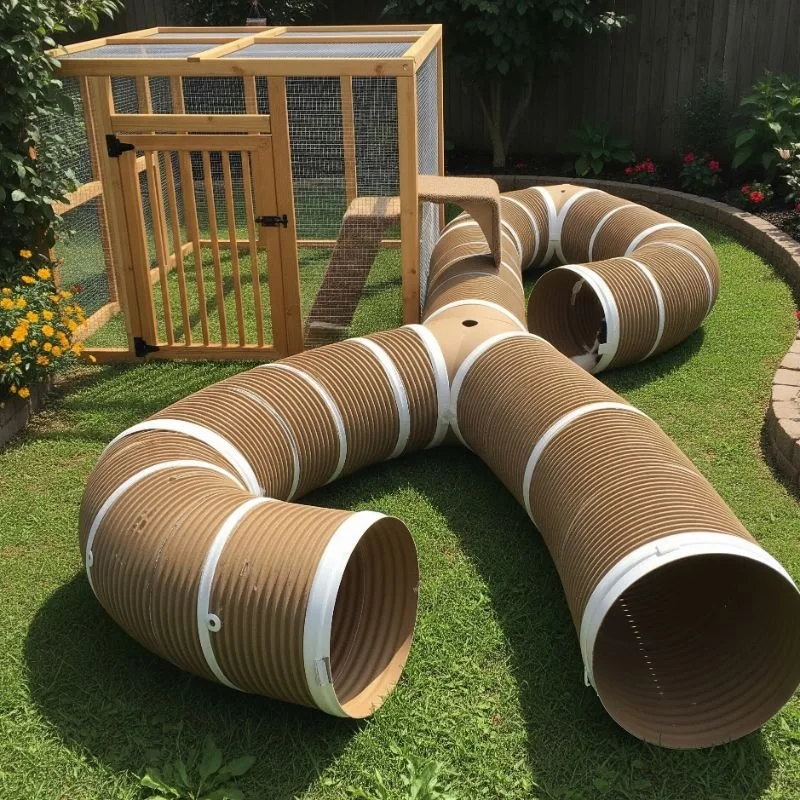 Think like a rabbit and create underground tunnel systems that provide unique exploration opportunities while maintaining pristine lawn aesthetics. These tunnels use buried drainage pipes or purpose-built tubes with mesh-covered access points. Connect multiple "stations" across your yard for pop-up surprise appearances. Installation requires trenching but results in invisible pathways that don't obstruct human yard use. Use 12-inch or larger diameter pipes for comfortable cat passage. Include vertical access tubes with ladder rungs or ramps. Costs run $300-1000 depending on system complexity. The underground environment stays cool in summer and provides shelter during rain. Ensure proper drainage to prevent flooding and include multiple exit points for safety. This innovative approach appeals to cats' hunting instincts while keeping them safely contained. Regular inspection ensures tunnels remain clear and damage-free. Your yard maintains its appearance while hiding an elaborate feline playground below.