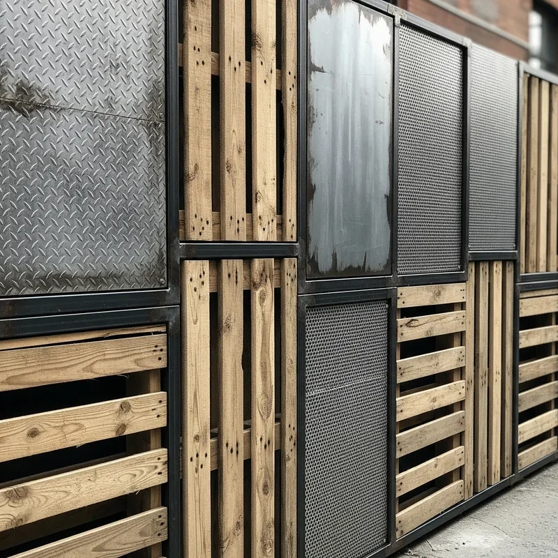 Marry rustic wood with sleek metal for an industrial chic fence that's totally on-trend! This fusion style combines pallet wood sections with metal posts, frames, or accents to create a contemporary look that bridges old and new. Think corrugated metal sheets alternating with pallet panels, or steel pipe frames holding weathered wood inserts. This combination offers incredible durability while maintaining visual warmth from the wood elements. The contrast between materials creates depth and prevents the fence from feeling too heavy or monotonous. Perfect for modern homes that want to maintain some organic elements in their design! You can play with proportions, using more metal for an urban feel or more wood for a softer approach.