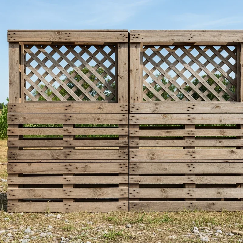 Add a touch of elegance to your pallet fence with a decorative lattice topper that brings sophistication to rustic charm. This design combines the solid privacy of pallet boards below with an airy lattice section above, creating the perfect balance between seclusion and openness. The lattice portion serves as an ideal support for climbing plants like jasmine or clematis, which will weave through the pattern creating a living crown for your fence. This architectural detail draws the eye upward and makes your fence appear taller without feeling imposing. You can buy pre-made lattice panels or create your own using thin pallet slats arranged in a crisscross pattern. The contrast between solid and open creates visual interest.