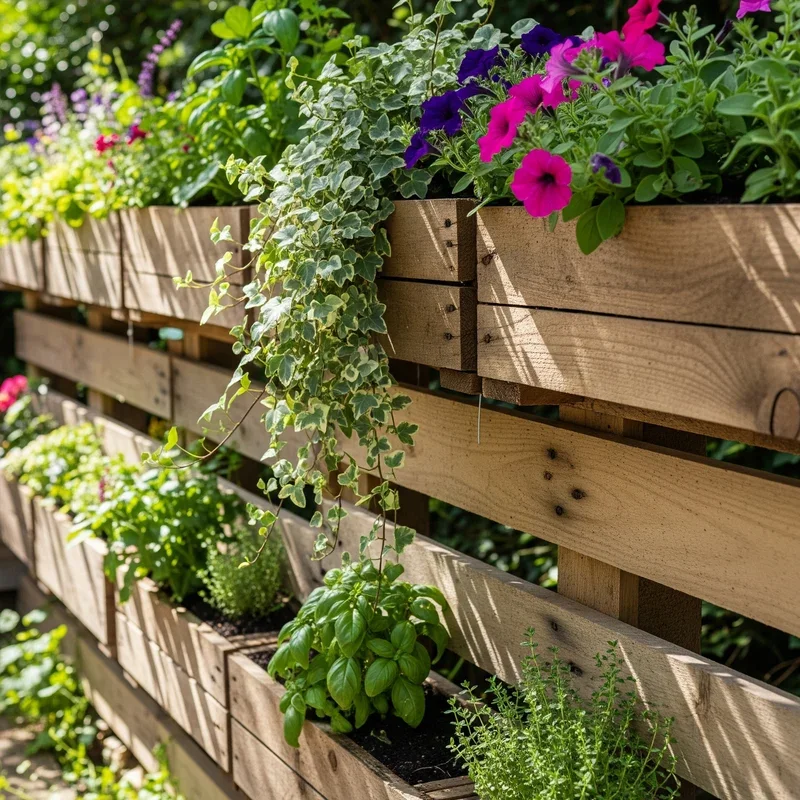 Who says fences have to be straight? A curved pallet garden border brings organic flow to your landscape, softening harsh lines and creating natural movement through your outdoor space. This design involves cutting pallets into sections and arranging them to follow the contours of garden beds or pathways. The gentle curves feel more inviting than rigid straight lines and work particularly well in cottage or naturalistic garden styles. You can vary the height along the curve to create undulating waves that add even more visual interest. This approach requires more planning and cutting than straight installations, but the resulting fluidity transforms static spaces into dynamic garden rooms that beckon exploration.