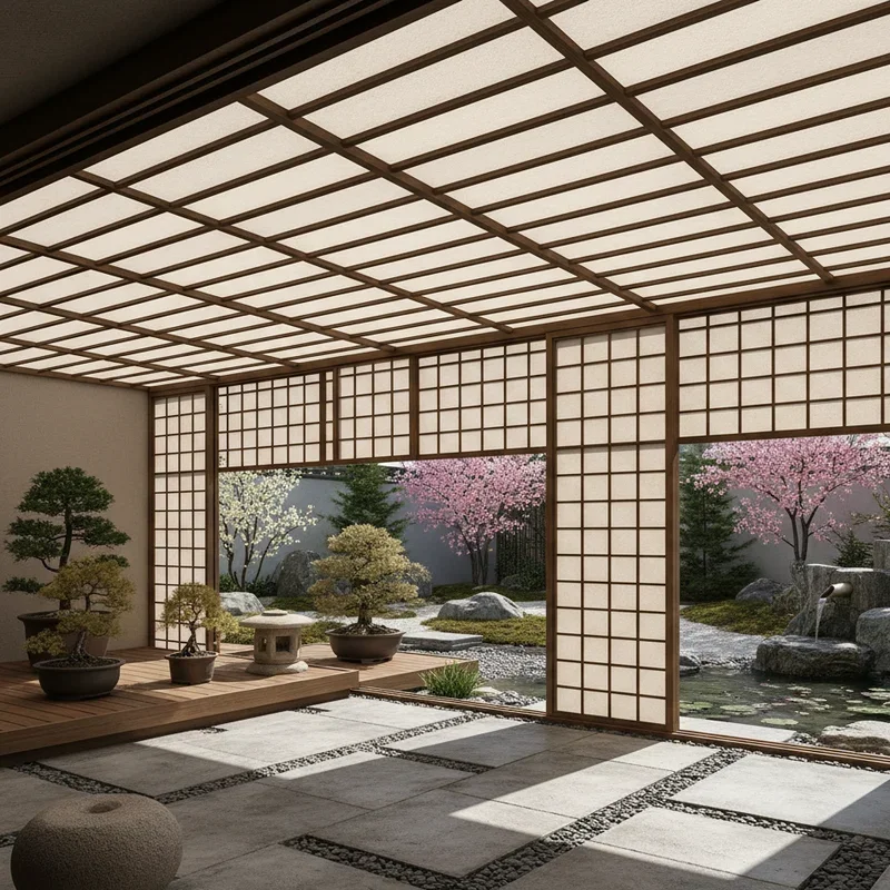 Find your zen with Japanese-inspired shoji screen awnings that filter light through translucent panels. These minimalist structures use wooden or bamboo frames with rice paper or modern polycarbonate panels. The soft, diffused light creates a calming atmosphere perfect for meditation or tea ceremonies. Sliding or folding mechanisms allow adjustable coverage while maintaining the clean aesthetic. Traditional grid patterns add geometric interest without overwhelming the simple design. Weather-resistant materials ensure these delicate-looking awnings withstand outdoor conditions. The neutral color palette complements any exterior while adding sophisticated Asian influence. These awnings excel at creating private spaces without feeling closed in. Many designs incorporate removable panels for seasonal flexibility or easy replacement. The lightweight construction suits apartments or rental properties where permanent installation isn't possible. These awnings pair beautifully with zen gardens, water features, or minimalist outdoor furniture.