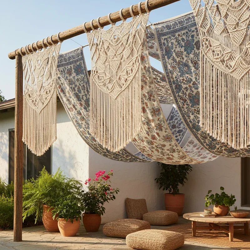 Free spirits rejoice! Bohemian macrame and fabric combo awnings create dreamy outdoor sanctuaries with artistic flair. These unique shade solutions layer macrame panels with flowing fabrics for filtered light and ethereal movement. Natural fibers like cotton or jute provide authentic texture while synthetic blends offer weather resistance. The handcrafted appearance adds personality that mass-produced options can't match. Many designs incorporate wooden beads, tassels, or fringe for extra visual interest. The layered approach allows customizable shade density by adjusting fabric panels independently. These awnings work wonderfully for creating intimate seating areas or meditation spaces. DIY enthusiasts love the creative possibilities and relatively simple construction techniques. The lightweight materials make seasonal changes easy, allowing different looks throughout the year. Regular shaking removes dust, while gentle washing keeps fabrics fresh. These awnings complement eclectic, bohemian, or globally-inspired outdoor designs perfectly.
