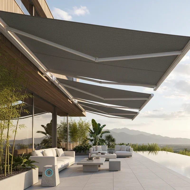 Less is definitely more with minimalist metal frame awnings that celebrate clean lines and understated elegance. These architectural statements use powder-coated steel or aluminum frames with tensioned fabric or polycarbonate panels. The slim profiles don't overwhelm smaller patios while still providing substantial shade coverage. Neutral colors like charcoal, white, or bronze complement any exterior palette without competing for attention. The geometric designs cast interesting shadows that change throughout the day, adding visual interest to plain walls. Many designs incorporate hidden fasteners and seamless joints for that floating appearance modern homeowners crave. Weather resistance comes standard with quality materials that maintain their appearance for decades. These awnings work exceptionally well with mid-century modern, contemporary, or industrial-style homes. The simplified design often means easier installation and lower maintenance requirements than ornate alternatives.