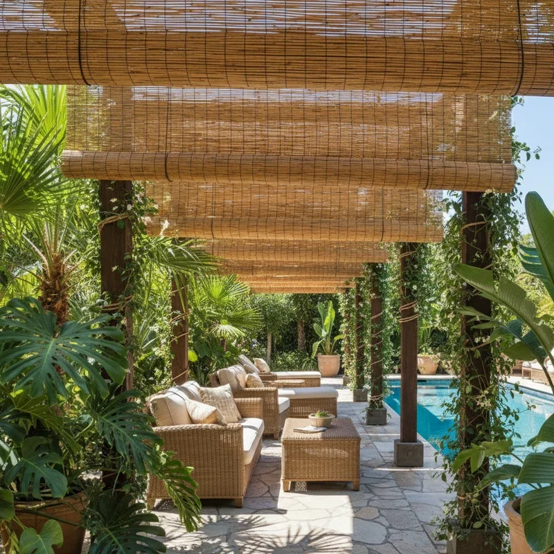 Transport yourself to paradise with bamboo roll-up awnings that infuse tropical vibes into any outdoor space. These natural shade solutions offer adjustable coverage through simple pulley systems or spring-loaded mechanisms. The bamboo's natural variation creates unique patterns and textures that synthetic materials can't replicate. Properly treated bamboo resists moisture, insects, and UV damage while maintaining its distinctive golden hue. The lightweight construction makes seasonal installation and removal manageable for most homeowners. These awnings filter sunlight beautifully, creating dappled shade that feels cooler than solid coverage. Many designs incorporate decorative borders or mixed materials for added visual interest. The sustainable nature of bamboo appeals to environmentally conscious homeowners seeking renewable materials. Regular application of protective sealers extends lifespan and maintains the bamboo's natural beauty. These awnings pair wonderfully with bohemian, tropical, or Asian-inspired outdoor decor.