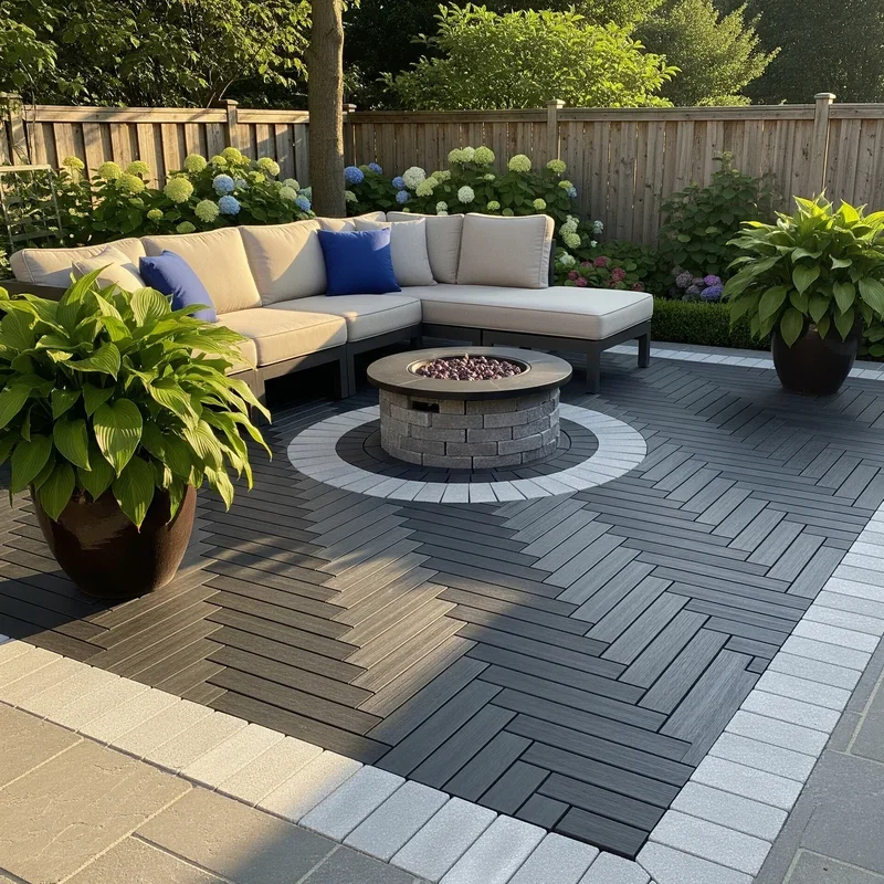 Why choose just one material when you can combine several for a truly unique patio? Mixed material designs let you leverage the best qualities of different flooring types while creating visual interest through contrast. Combine warm wood decking with cool stone borders, or alternate between gravel sections and paver pathways. Use expensive materials as accents within budget-friendly bases for high-end looks without breaking the bank. Different materials can define functional zones: stone for dining areas, wood for lounging, gravel for fire pit surrounds. The key is maintaining visual cohesion through consistent color palettes or repeating patterns. This approach allows phased installation, spreading costs over time. Your mixed material patio becomes a custom creation that perfectly reflects your style and meets all your outdoor living needs!