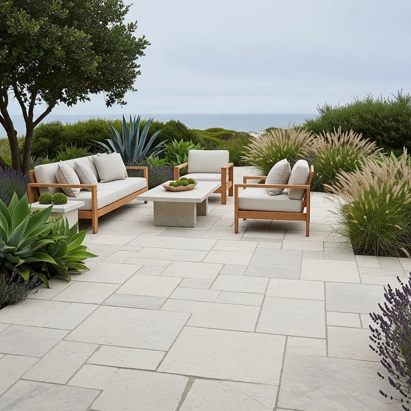 Bring beach house sophistication to any location with limestone's subtle beauty and coastal charm! This sedimentary stone offers soft, muted colors from cream to gray that complement any design style. The naturally smooth texture feels wonderful underfoot while remaining slip-resistant for safety. Limestone stays cooler than darker stones, making it comfortable for poolside applications. Its consistent coloring creates calm, unified surfaces that don't compete with landscape features. The stone develops a beautiful patina over time, enhancing its natural character. While softer than granite, proper sealing protects against stains and weather damage. Choose from tiles for formal looks or irregular pieces for organic designs. Your limestone patio evokes seaside serenity, creating a peaceful retreat that feels like a permanent vacation!