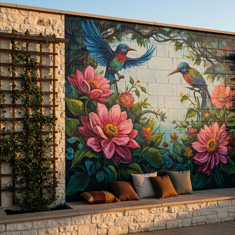 Turn your patio wall into a masterpiece that reflects your personality! Outdoor murals and paintings transform bland surfaces into conversation starters that showcase your unique style. Whether you hire a local artist or channel your inner Picasso, weather-resistant paints ensure your artwork survives the elements. Imagine a tropical beach scene that makes every day feel like vacation, or abstract patterns that complement your modern furniture. You could paint a trompe-l'oeil garden gate that adds depth and whimsy, or go bold with geometric designs in your favorite colors. The beauty of painted walls? You can change them whenever inspiration strikes! This option works especially well for renters who can't make permanent changes. Your patio becomes an outdoor gallery where you're both curator and audience. Who needs expensive art when your wall is the canvas?