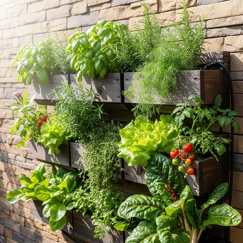 Why not make your patio wall both beautiful and delicious? Vertical garden systems let you grow fresh herbs and vegetables right where you entertain, creating a farm-to-table experience in your own backyard. These modular planters or tower gardens maximize growing space while adding incredible visual interest. Imagine snipping fresh basil for your pasta or grabbing tomatoes for your salad without leaving the patio! The cascading greenery softens hard surfaces while the variety of textures and colors creates natural art. You can organize plants by water needs, sun requirements, or simply by what looks good together. Many systems include built-in irrigation, making maintenance surprisingly simple. Your wall becomes a productive landscape that feeds both body and soul. Plus, nothing impresses dinner guests quite like harvesting ingredients for their meal right before their eyes!