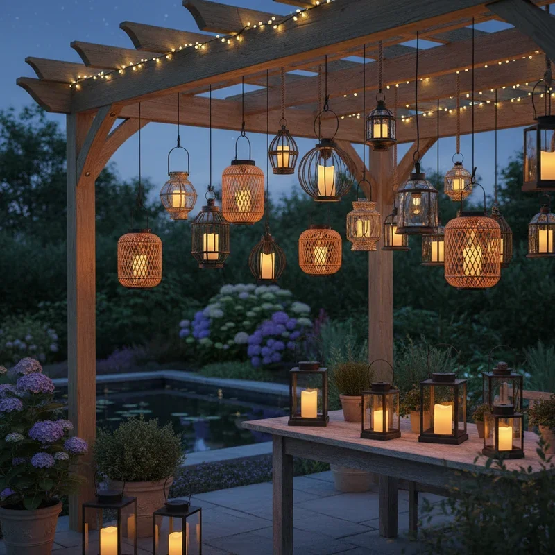 Nothing quite matches the romantic flicker of candlelight dancing across faces gathered around your pergola table. Real candles in hurricane lamps or mason jars provide authentic ambiance, though flameless LED alternatives offer the same warm glow without fire concerns. Arrange pillar candles of varying heights on tables and ledges for layered illumination that feels organic and inviting. Citronella candles do double duty by providing light while keeping mosquitoes at bay during summer evenings. Floating candles in water-filled bowls add unexpected elegance to special occasions. For everyday use, rechargeable LED candles with realistic flicker effects and remote controls offer convenience without sacrificing atmosphere.