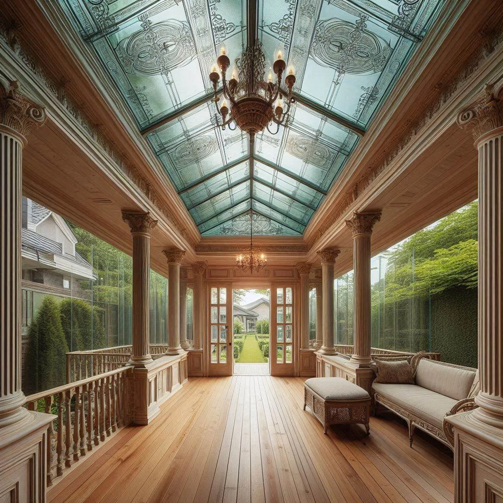 If you love natural light, glass or transparent panels are an excellent choice for covered porches. These materials allow sunlight to pour into the space, creating a bright and airy atmosphere while still offering protection from the elements. Glass panels keep the outdoors close, making your porch feel open and expansive without sacrificing shelter. For a touch of nature, combine the transparent panels with lush greenery, transforming your porch into an open-air greenhouse or sunroom. This combination not only enhances the visual appeal but also creates a soothing, light-filled environment perfect for relaxing, reading, or entertaining. Glass panels provide a perfect balance of openness and protection, ideal for enjoying the changing seasons while staying comfortable.