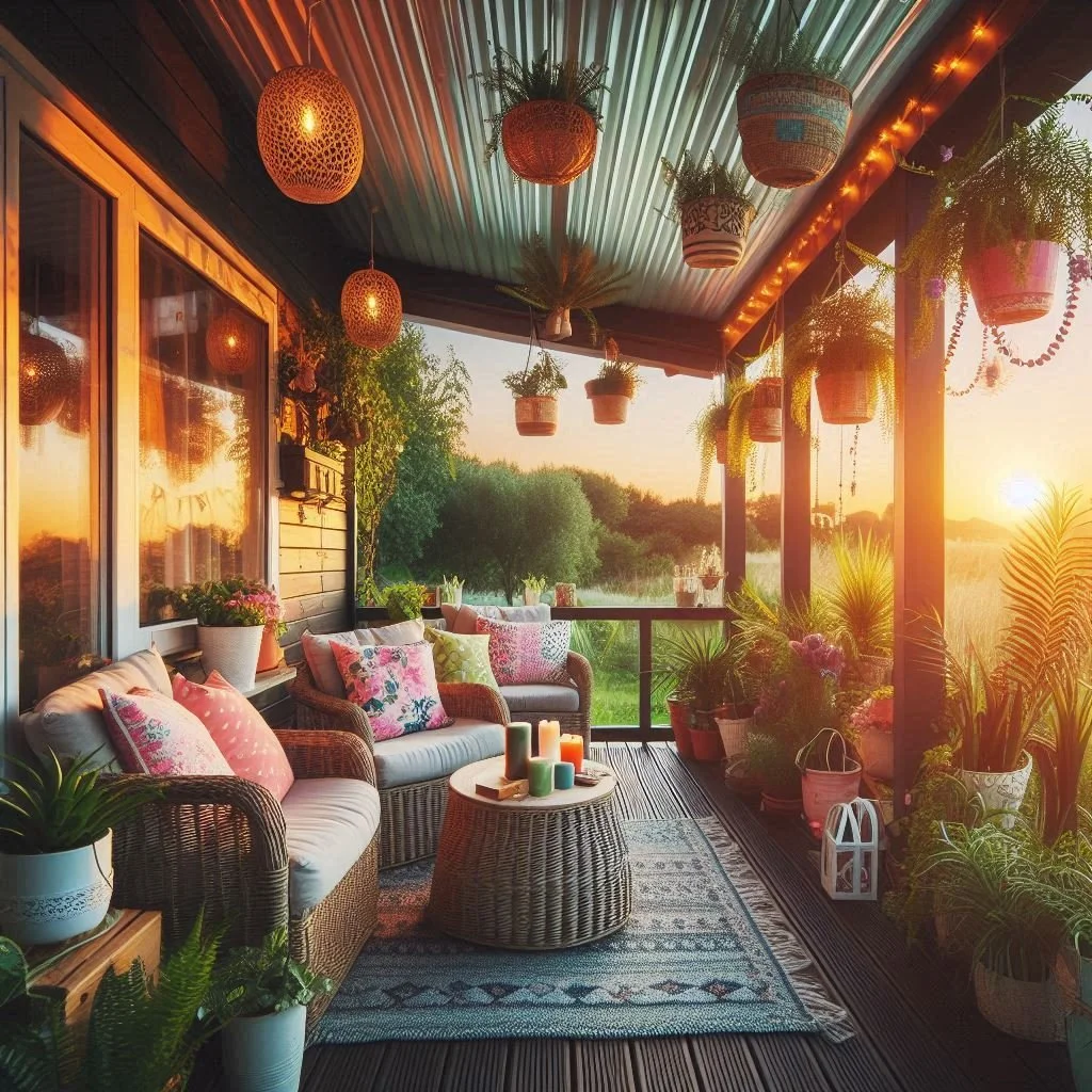 For a contemporary or industrial look, corrugated metal or tin panels offer a sleek, modern touch that’s both stylish and practical. These materials are incredibly durable, making them ideal for outdoor settings, where they can withstand the elements while maintaining their industrial charm. The distinct, textured pattern of corrugated metal creates visual interest and adds depth to your porch, making it feel unique and edgy. Pairing these panels with minimalist furniture, such as clean-lined metal chairs or simple wood tables, will enhance the overall aesthetic, creating a cohesive, modern design. This combination gives your porch an urban, industrial vibe while keeping the space functional and low-maintenance, perfect for those who appreciate a contemporary, no-fuss approach to outdoor living.